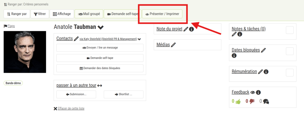 Le mieux est de créer votre propre projet, par exemple « Comédiens intéressants », et d’y ajouter au moins un rôle. Enregistrez tous les comédiens intéressants dans ce projet.