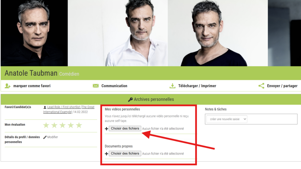 Vous pouvez ainsi compléter vos propres médias en plus des démos et photos publiques et vous créer un archive personnel complet sur etalenta.