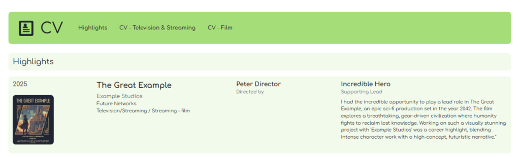 Make your CV even more vivid for casting directors, producers and directors: